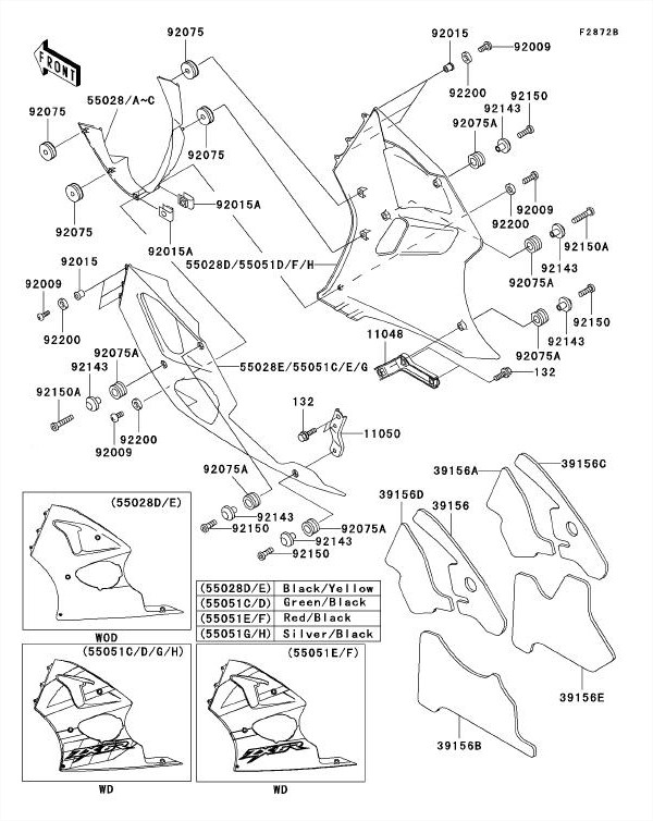 Flanc de carenage droit SILVER pour NINJA ZX-6R de 2000-2002